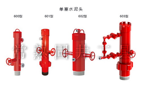 單塞水泥頭有普通的單塞水泥頭600型,也有帶管匯、帶快裝的單塞水泥頭603型,這要根據(jù)井隊(duì)的使用要求而定。普通的單塞水泥頭一般有一排擋銷,擋銷下面有由壬口,用來(lái)循環(huán)泥漿的,上蓋帽上有一個(gè)由壬扣,用來(lái)注水泥打膠塞,這是最簡(jiǎn)單的單塞水泥頭,也有帶管匯、帶快裝的單塞水泥頭,其作用與普通水泥頭相同,只是為了提高工作效率和操作方便。